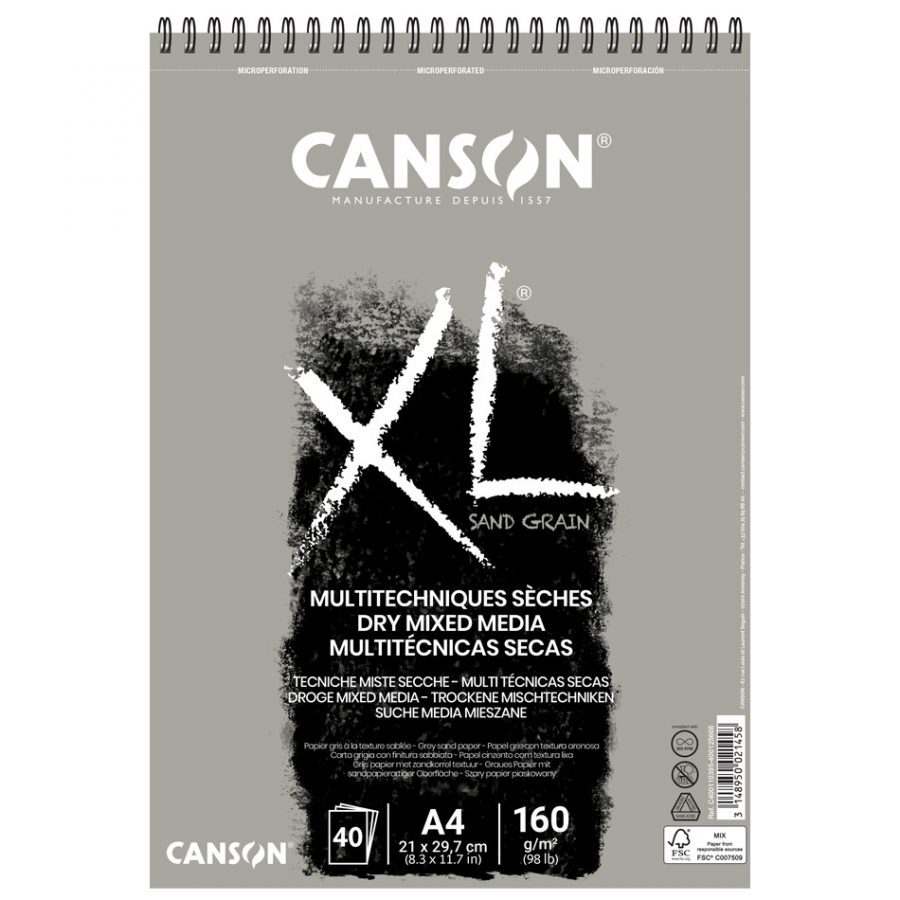 Canson XL Sand Grain è una carta realizzata con materiali organici rinnovabili. La sua superficie trattiene i pigmenti e la sua superficie è ideale per tutte le tecniche secche (pastello, fusaggine, carboncino, matite). Può essere utilizzata su entrambi i lati, perfetta per gli studenti.