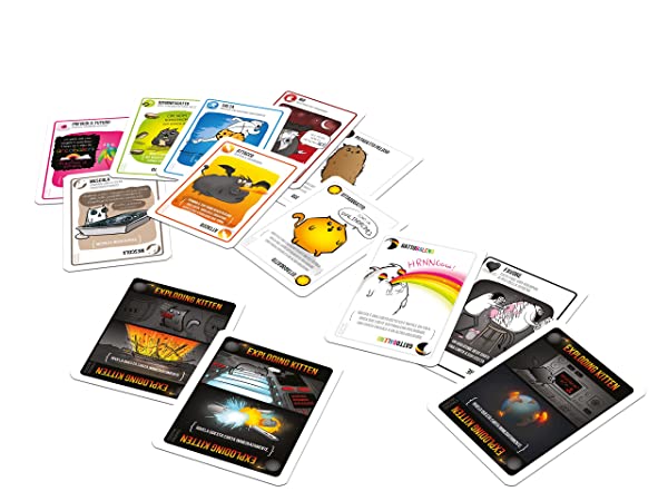 - I giocatori pescano carte fino a quando qualcuno non incappa nella temuta carta Exploding Kitten: a quel punto quel qualcuno esplode ed è eliminato dal gioco, a meno che non abbia una carta Disinnesgatto per evitare l’esplosione