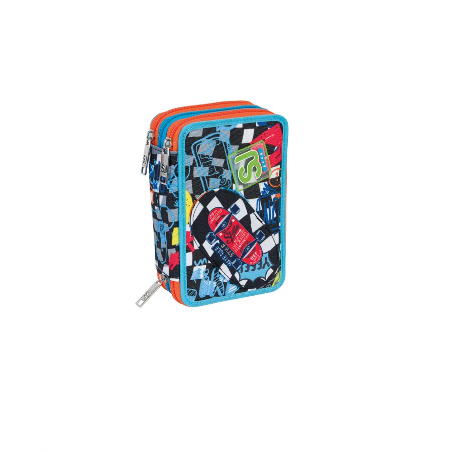 Caratteristiche: Mini FLIP SYSTEM, il sistema di una piccola pattina sfogliabile con due grafiche diverse posizionata sulla plancia. CONTENUTO 45 PEZZI: 18 Pastelli a colori mina 4.0 SEVEN COLOUR CODE, 18 Pennarelli lavabili SEVEN COLOUR CODE, 1 Penna cancellabile blu, 1 Penna cancellabile rossa, 1 Matitone fluo bicolor giallo e arancio COLOUR CODE, 1 Matita grafite COLOUR CODE, 1 Gomma COLOUR CODE, 1 Temperino barilotto a 2 fori, 1 Colla stick COLOUR CODE, 1 Righello trasparente, 1 Forbice in metallo con maniglia in plastica