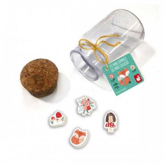 I barattoli Janod contengono 20 mini gomme fantasia, perfette per la scuola o per disegnare a casa. Tuo figlio può conservare tutte le sue gomme da cancellare nel barattolo di plastica e nel tappo di sughero.