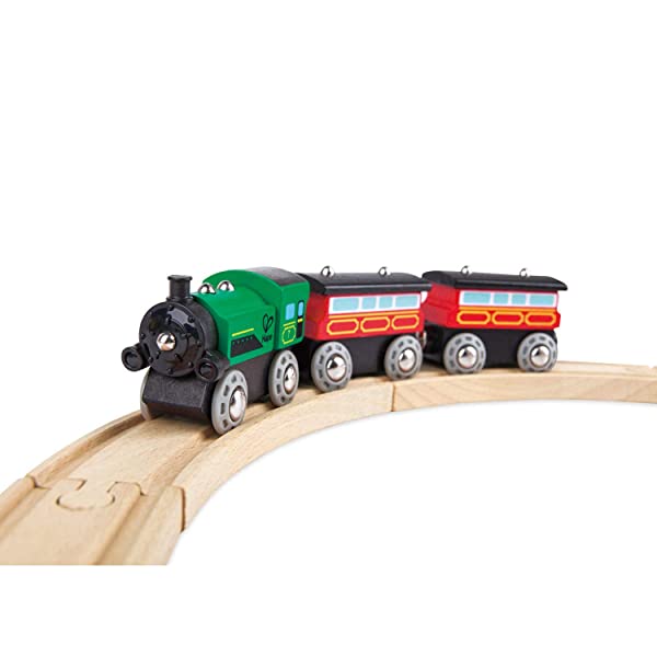 Treno passeggeri con uno stile antico Articolo utile per lo sviluppo delle capacità motorie Adatto ai bambini da tre anni in su Prodotto realizzato con materiali di qualità
