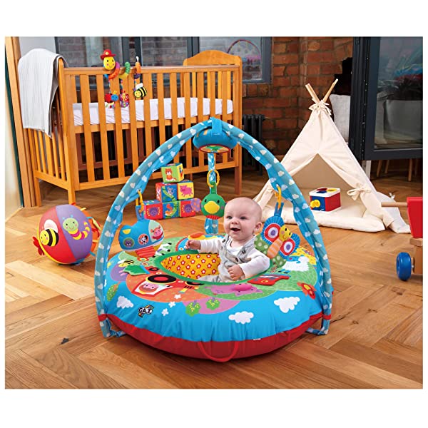 La parte centrale è triangolare per offrire un migliore sostegno laterale al bambino Le sagome sospese invitano alle prime esplorazioni Rivestimento lavabile in lavatrice Diametro cm 100. Da 0 mesi. Anello gonfiabile con rivestimento in tessuto Attività multisensoriali sul bordo Rivestimento lavabile in lavatrice Palestrina flessibile dotata di ganci e clip Diametro esterno 100 cm