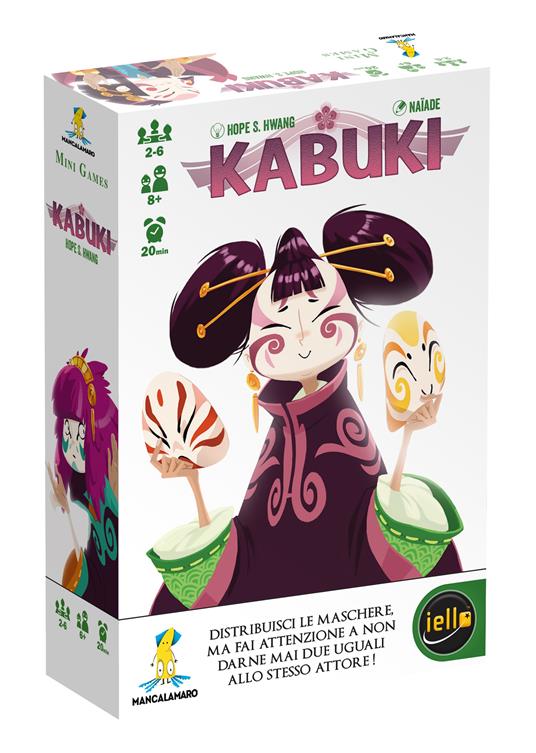 Linea Mini Games, Gioco di Memoria. Si deve assegnare le maschere agli attori del Teatro, stando attenti a non assegnare mai allo stesso attore una maschera doppia. Molta memoria e attenzione, con le splendide illustrazioni di Naiade.Da 2 a 6 GiocatoriTempo Medio Partita: 20 minuti
