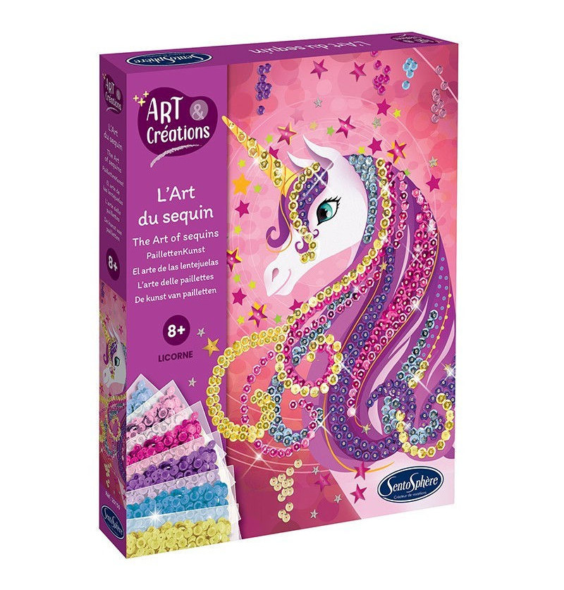 Create una superba illustrazione di unicorno scintillante e multicolore con le paillettes! Durante questa attività di artigianato artistico, appuntate paillettes colorate su un’illustrazione di unicorno per aggiungere dettagli scintillanti! Godetevi questa tecnica creativa che consiste nell’appuntare paillettes su una cornice di polistirolo rivestita di carta di lino. È facile, divertente e il risultato è tanto scintillante quanto affascinante. Contenuto: 1 illustrazione stampata 1 cornice in polistirolo Più di 6 paillettes di colori diversi 1 sacchetto di spilli Scatola realizzata con oltre l’80% di cartone riciclato