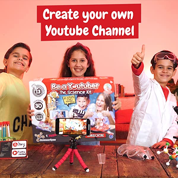 • 【Kit 13 Esperimenti Scientifici per Bambini +8 Anni 】Crea il tuo canale YouTube e condividi le tue esperienze con i tuoi amici. Crea la tua lampada di lava, crea il tuo kit vulcano o esperimenti esplosivi. Puoi anche imparare molti trucchi per modificare i tuoi video e interagire con il tuo pubblico, utilizzando l’attrezzatura youtube per bambini presente in questo giochi creativi e educativi.