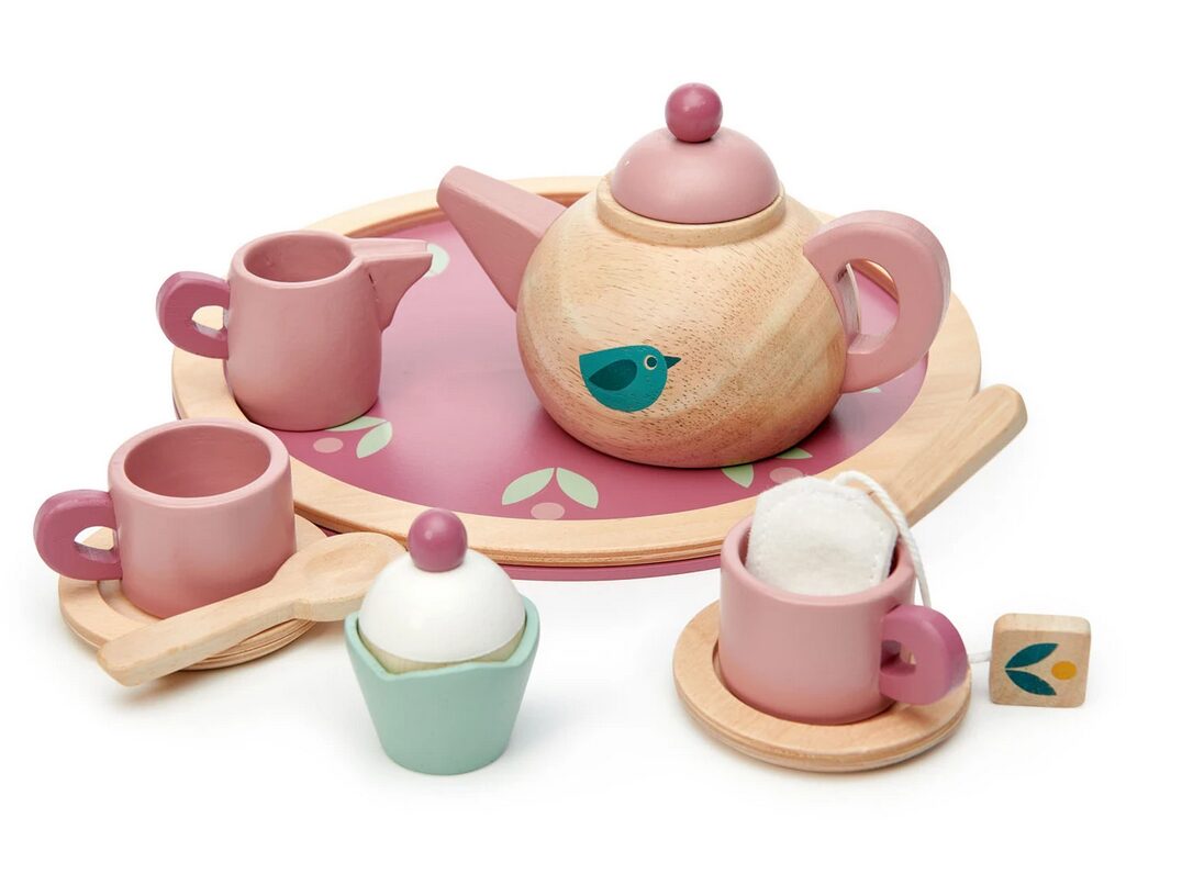 Un romantico servizio da tè in legno caratterizzato da un grazioso motivo di uccelli sui piattini e sul lato di una teiera in legno massello. Un grazioso cupcake e una bustina di tè, 2 tazze con piattino e 2 cucchiaini da tè, oltre a una lattiera. Il tutto presentato su un vassoio rotondo. Fascia d’età: […]