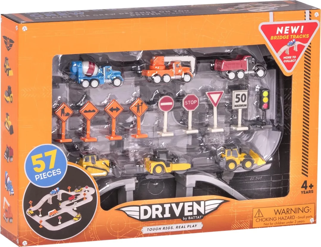 Dai un’occhiata ai fantastici multipack tascabili di DRIVEN by Battat! Questo set di costruzione giocattolo è incentrato sul portare a termine il lavoro nel modo giusto. Il set da gioco da 57 pezzi contiene 6 veicoli da costruzione, tra cui 1 betoniera, 1 bulldozer e 1 camion con gru. Costruisci le tue strade con i 42 tracciati facili da collegare! Sono inclusi anche 9 segnali stradali per un effetto realistico.
