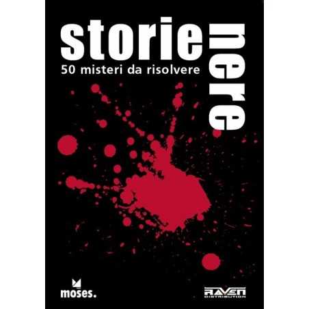 Storie Nere: 50 MISTERI DA RISOLVERE, gioco di carte, di Raven Distribution. 50 storie nere, 31 delitti, 49 cadaveri, 11 omicidi, 12 suicidi e uno spuntino mortale. Che cosa sarà successo?