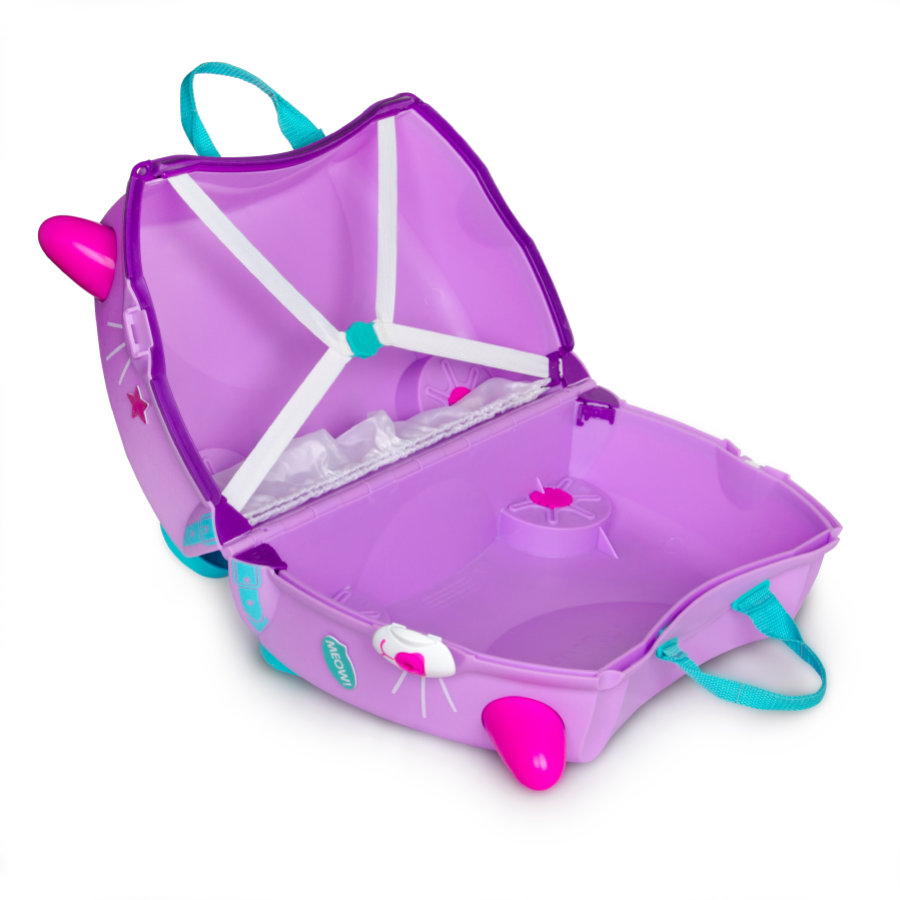 Porta Cassie il gatto Trunki nelle sue avventure da gattino! Progettata per i più piccoli, questa valigia per gatti è pronta per essere attaccata agli adesivi scintillanti di pesce, saltare e prepararsi a cavalcare ed esplorare!