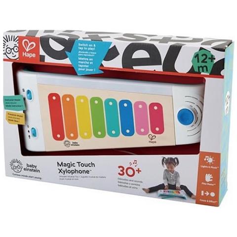 XILOFONO 30 melodie e suoni MAGIC TOUCH legno e plastica HAPE 2 modalità BABY EINSTEIN età 12 mesi + Strumento musicale in legno e plastica MAGIC TOUCH XYLOPHONE a batteria, di Hape. Un gioco musicale elettronico, compatto e con il volume regolabile a 2 livelli! Questa tastiera è in grado di riprodurre più di 30 diverse melodie e suoni. Potrai suonare in due modalità distinte: Instructor Mode e Freestyle. Inclusa bacchetta attaccata con cordino e pulsante Einstein.