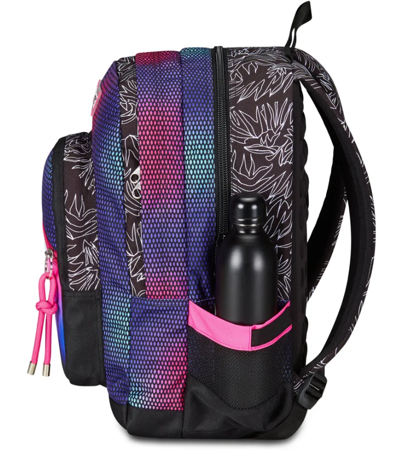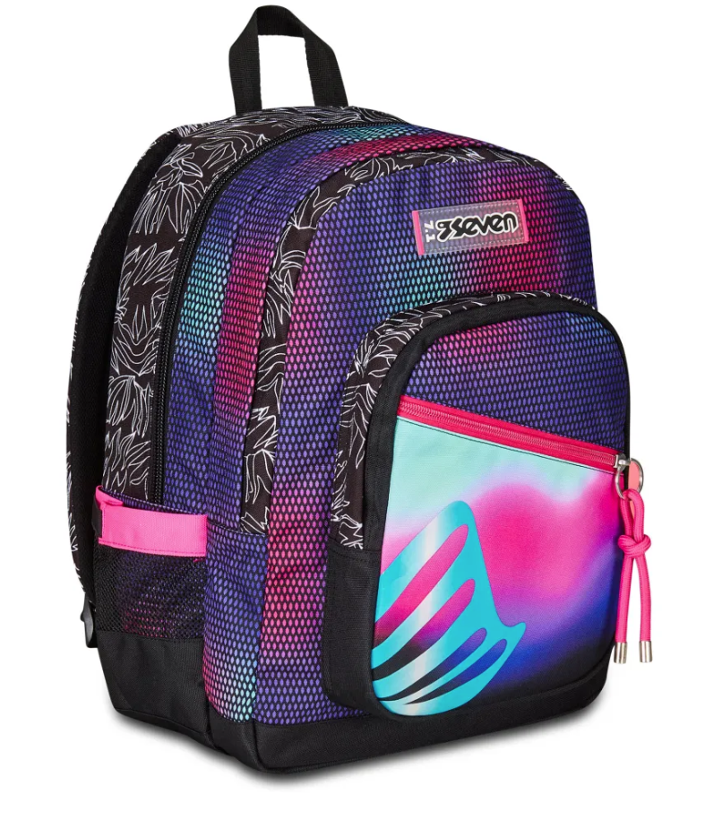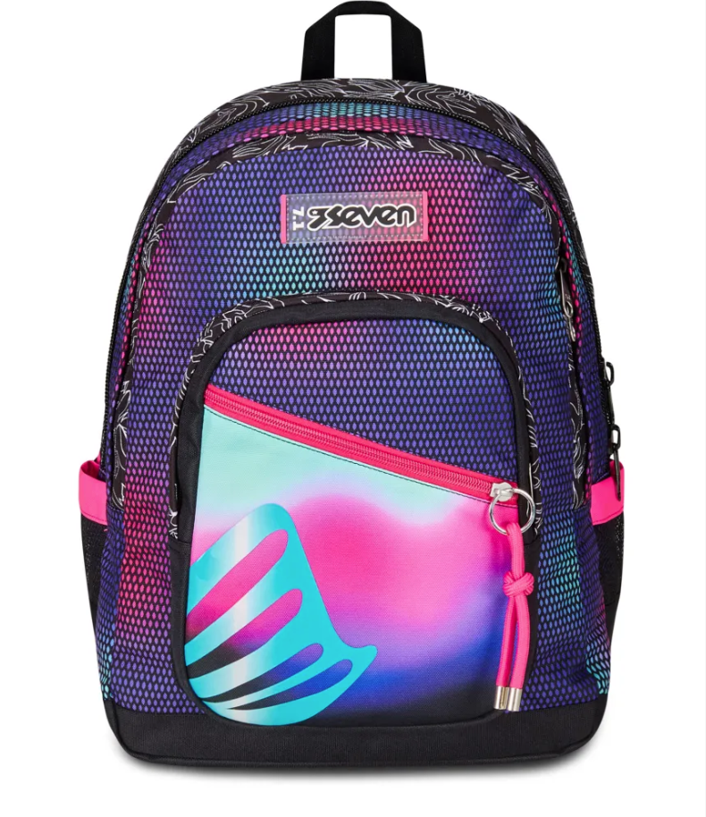 Zaino Seven Freethink Shadefull girl Controlla di aver messo tutto quello che ti serve prima di uscire di casa, tanto sai che nel doppio scomparto del tuo nuovo zaino Seven Freethink c’è tutto lo spazio per libri e quaderni, ma anche per un cambio per una partita al campetto nel tempo libero. Questo zaino è progettato per offrire praticità e comfort, rendendo le tue giornate scolastiche più organizzate e piacevoli. Hai messo il PC o il tablet nello scomparto interno? E la borraccia nella tasca laterale? Caratteristiche principali: Schienale: Ergosystem preformato per un supporto ergonomico e confortevole Capacità: 34 litri, ideale per contenere tutto il necessario per la scuola e il tempo libero Dimensioni: 33 x 44 x 20 cm, perfette per garantire spazio e praticità Struttura: Zaino a doppio scomparto con zip a rovescio stampata con sfumature Tasche: Tasca interna porta PC/tablet per proteggere i tuoi dispositivi elettronici Tasca frontale per un accesso rapido agli oggetti essenziali Tasche laterali porta borraccia per mantenerti idratato durante la giornata Spallacci: Imbottiti e rivestiti in tessuto e rete per un maggiore comfort durante il trasporto Tessuto: Realizzato in poliestere, resistente e durevole per l’uso quotidiano Garanzia: 4 anni, che assicura qualità e affidabilità nel tempo