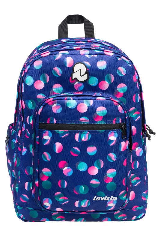 - Caratteristiche: zaino doppio scomparto con fondo rinforzato, tirazip con cordino e patch Invicta.