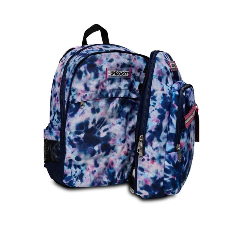 Caratteristiche: zaino doppio scomparto con apertura dello scomparto principale facilitata. Scomparto frontale dello zaino staccabile per diventare zainetto con spallacci in nastro. Nuova etichetta in gomma personalizzata con logo SEVEN