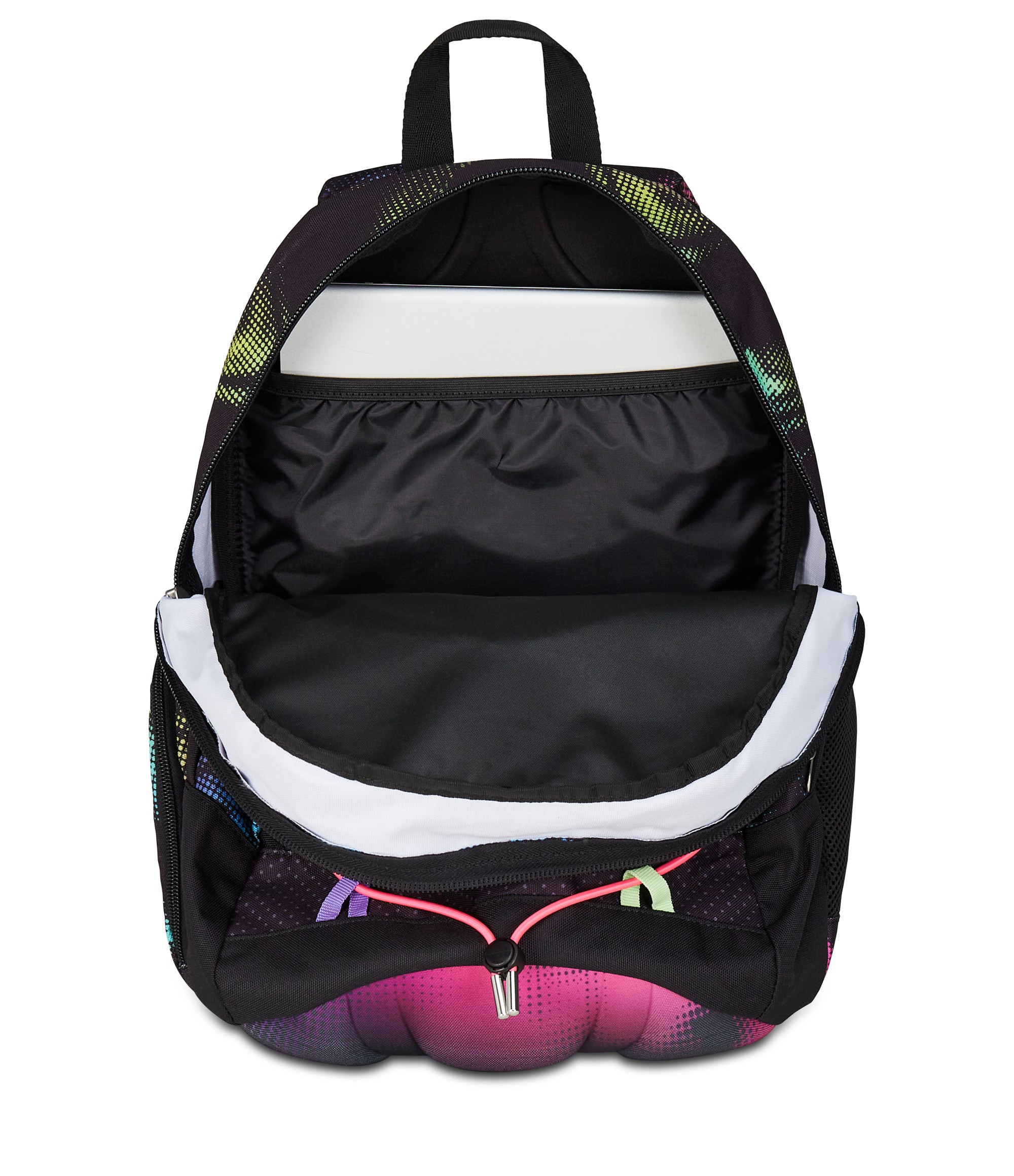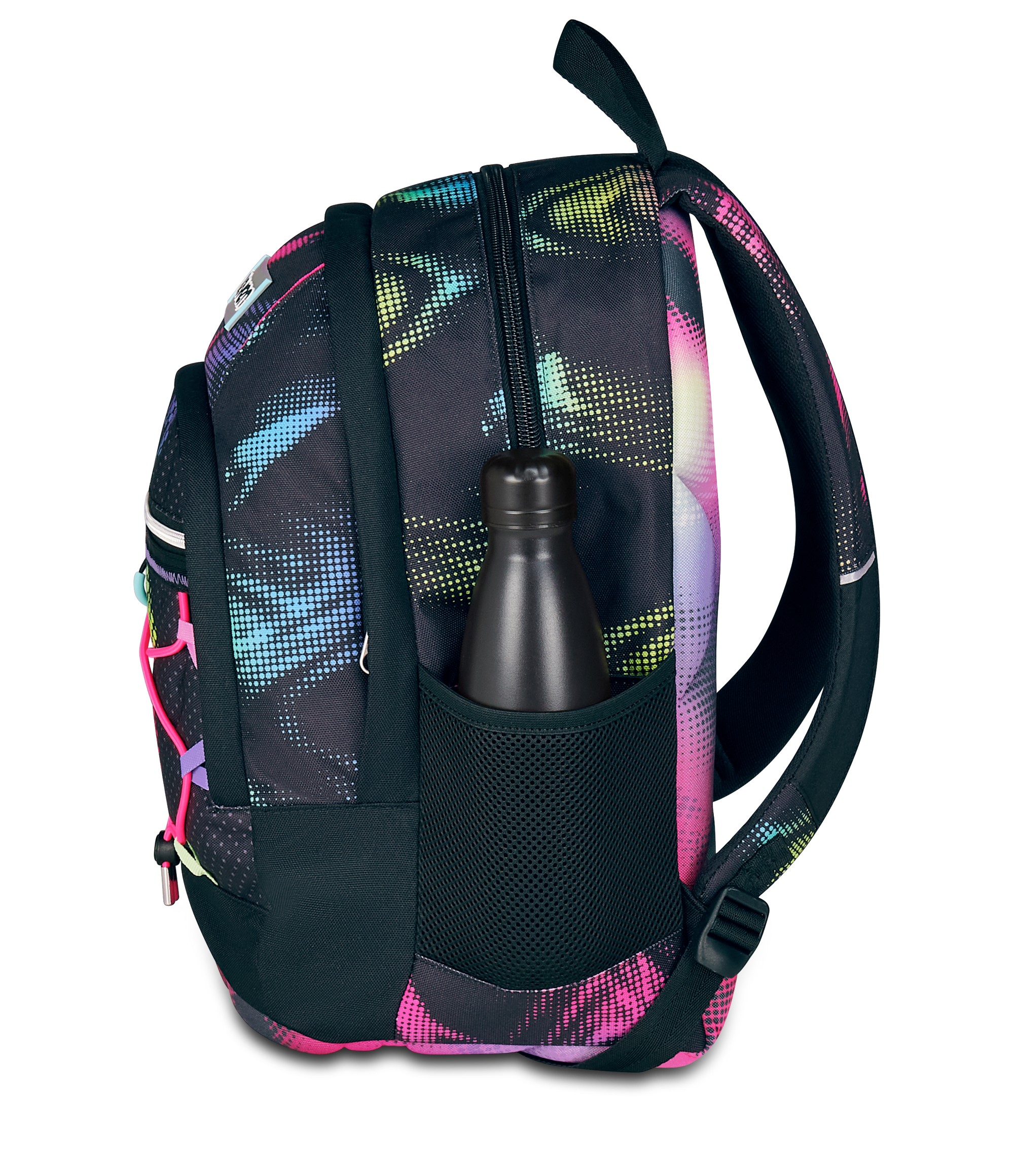 Tasca: interna porta pc e due tasche laterali: una chiusa con zip e una con rete porta borraccia. Tasca frontale con organizer