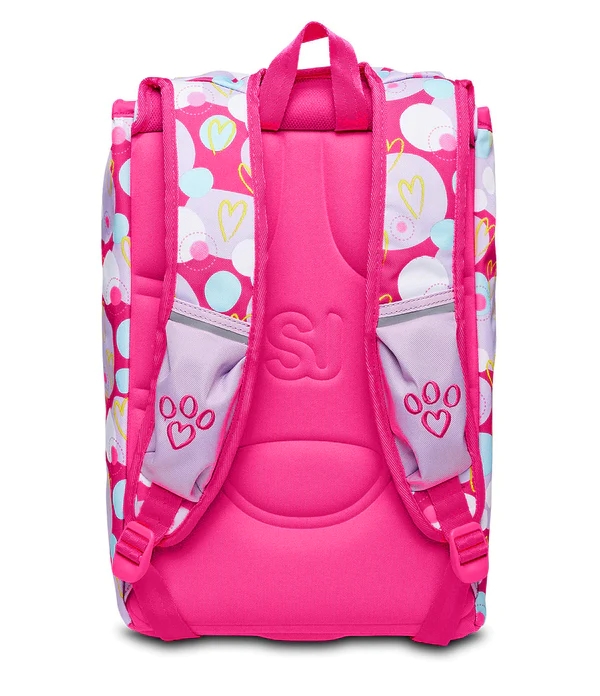 Ciao! Sono HEART LOLLY, lo zaino estensibile SJ GANG con cui vai a scuola, ma puoi anche giocare. Grazie al mio SISTEMA AD ARIA attivabile dallo spallaccio con pulsante a pressione, infatti, puoi divertirti a muovere le mie fantastiche ORECCHIE GLITTER DI PELUCHE! Ho un doppio scomparto spazioso, di cui puoi aumentare facilmente la capienza tramite le zip laterali per poter accogliere e distribuire in modo ottimale libri, quaderni e tutto ciò che ti serve per la tua giornata, potendo sfruttare anche la tasca frontale. Inoltre, sono davvero comodo da indossare sulle spalle, grazie a schienale e spallacci confortevoli. In più, il fondo integrato mantiene la mia struttura inalterata, garantendo la stabilità del contenuto anche a pieno carico.